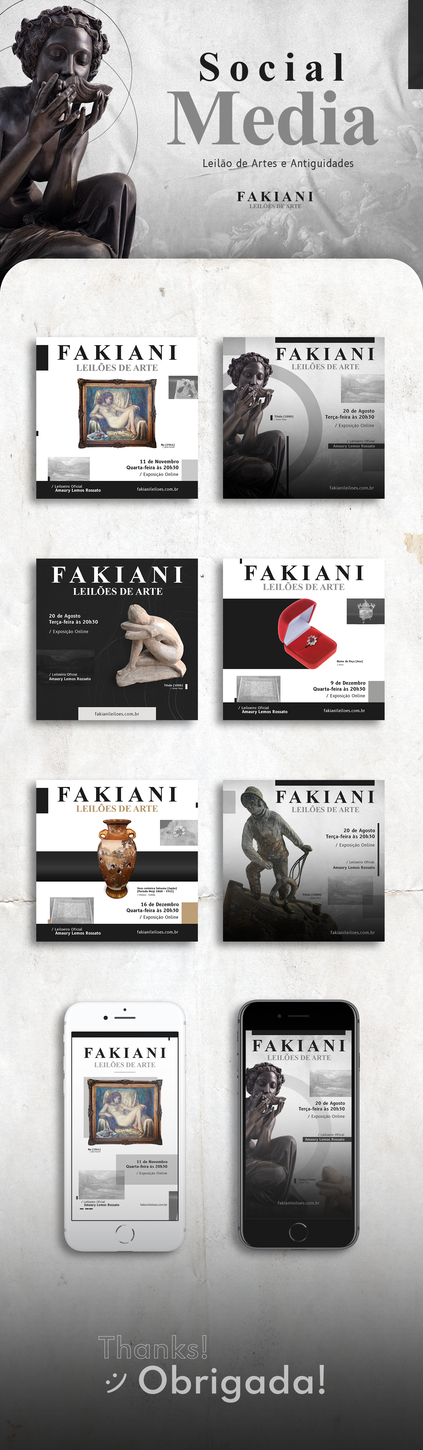 Design para social media para Instagram da Fakiani Leilões de Arte e Antiguidades. O material visa atrair clientes em potencial para a exposição online de futuros leilões de arte.